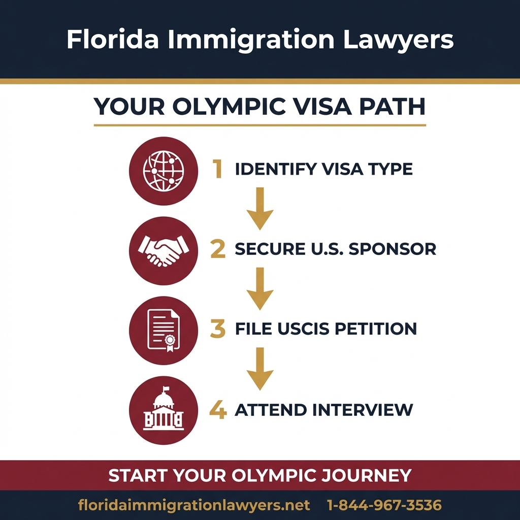 For Olympic athletes, coaches, and essential support staff, the primary visa category is the O-1 visa for individuals with extraordinary ability in athletics, or the P-1 visa for internationally recognized athletes and athletic teams. The P-1 visa is often more suitable for group participation like an Olympic team. Support personnel, such as trainers, referees, and even certain media, may qualify under the P-1S classification. Each visa type has specific criteria regarding international recognition, achievements, and the nature of their role in the Olympics. Consulting with an experienced Florida immigration lawyer is crucial to determine the most appropriate visa path.