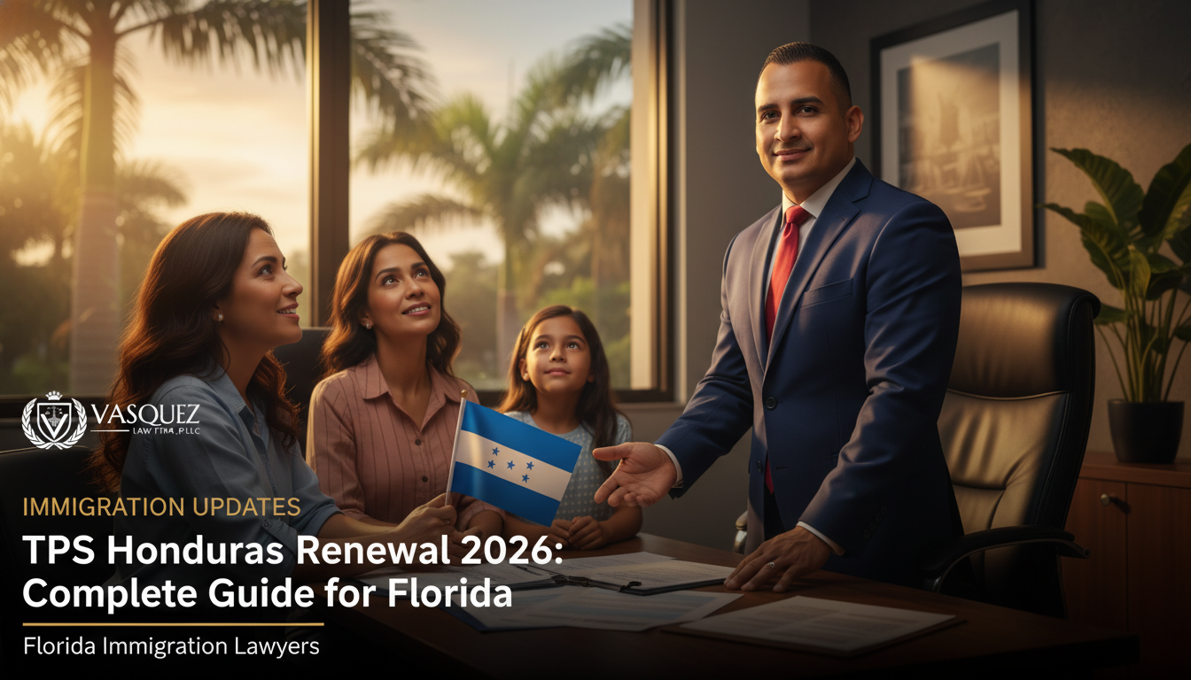 If you are a Honduran TPS holder living in Florida, renewing your Temporary Protected Status on time is critical to maintaining your work authorization and legal presence in the United States. At Vasquez Law Firm, we have handled over 30,000+ immigration cases with a 98% success rate, and we understand the specific challenges our community faces.