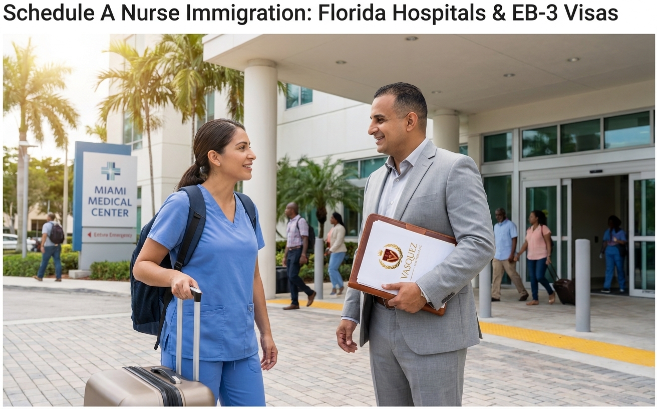 Navegar las complejidades de la ley de inmigración de EE. UU. puede ser desalentador, especialmente al tratar con categorías de visa específicas como la EB-3 para profesionales. Comprender los requisitos, procedimientos y posibles trampas es esencial para un resultado exitoso. Esta guía completa de Florida Immigration Lawyers le explicará todo lo que necesita saber sobre la inmigración de enfermeras Schedule A, centrándose en cómo beneficia tanto a las enfermeras como a los hospitales de Florida. Desde la elegibilidad inicial hasta la obtención de su tarjeta verde, desmitificaremos el proceso y destacaremos por qué la orientación legal experta es invaluable. No se embarque solo en este viaje que cambia la vida. Llame a Florida Immigration Lawyers al 1-844-967-3536 para una consulta gratuita y permítanos ayudarle a lograr su sueño americano.